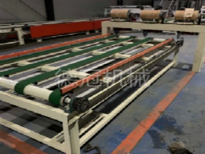 玻镁装饰板生产机械设备生产线采用创新的工艺路线,通过集合采用桁架机械手,长度计量切割等形式,实现自动化生产,生产线需要配置4人,实现1分钟节拍快速生产。
